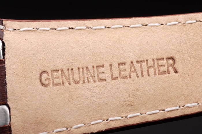 Bracelet: Heat embossed Audemars Piguet brown crocodile leather strap with white stitching and Audemars Piguet engraved rose-gold plated fold-in clasp