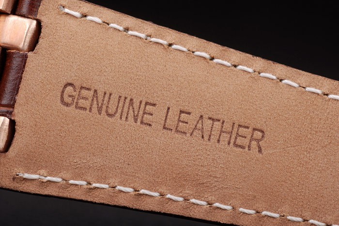 Bracelet: Heat embossed Audemars Piguet brown crocodile leather strap with white stitching and Audemars Piguet engraved rose-gold plated fold-in clasp