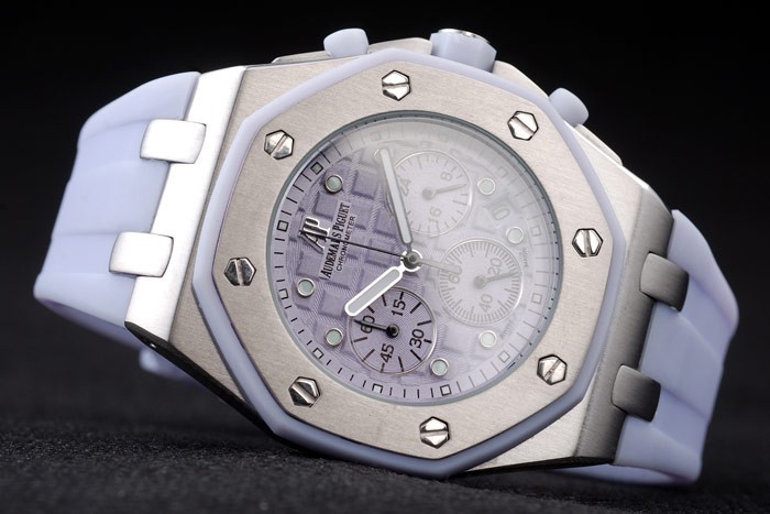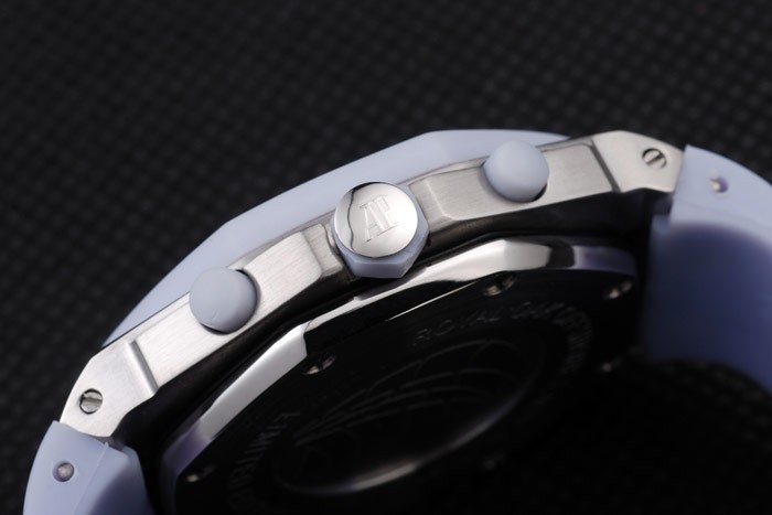 Bracelet: Audemars Piguet Royal Oak Offshore embossed lilac rubber strap with Audemars Piguet engraved polished stainless steel fold-in clasp