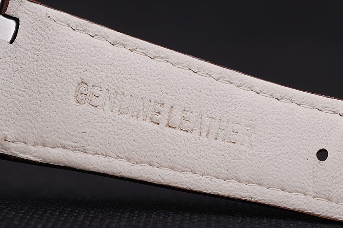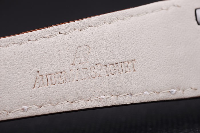 Bracelet: Brown crocodile leather strap with white thread stitching and heat embossed Audemars Piguet name and logo and an Audemars Piguet inscribed stainless steel flip-over hook clasp