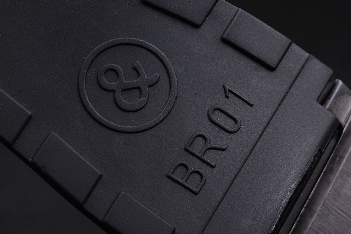 Bracelet: Black rubber strap with heat embossed logo, model number and product code and BR engraved ion-plated hook-buckle clasp