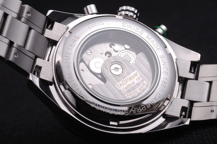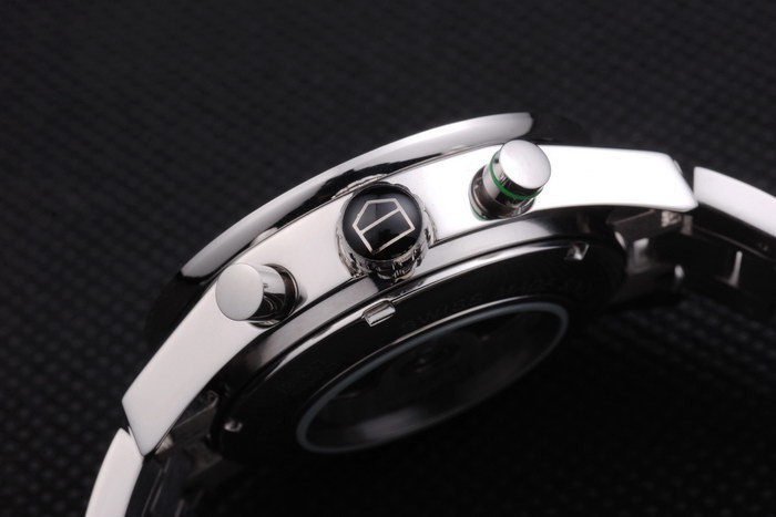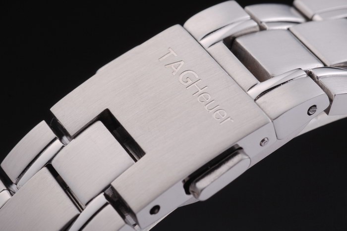 Crown: Polished stainless steel crown with Tag Heuer logo and two smaller crowns on either side