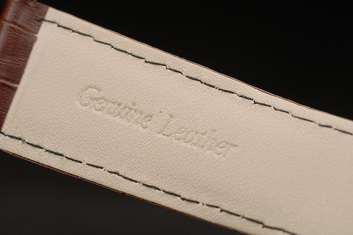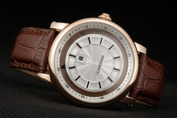 Bracelet: Cartier heat embossed brown crocodile leather strap with rose-gold plated buckle clasp