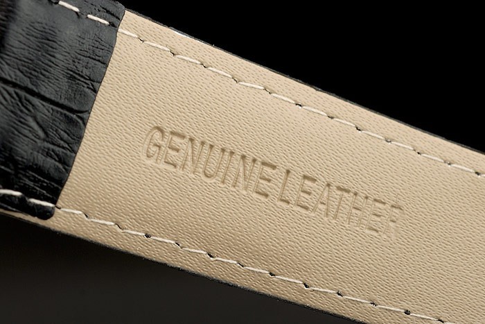 Bracelet: Cartier heat embossed black crocodile leather strap with rose-gold plated buckle clasp