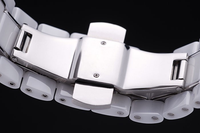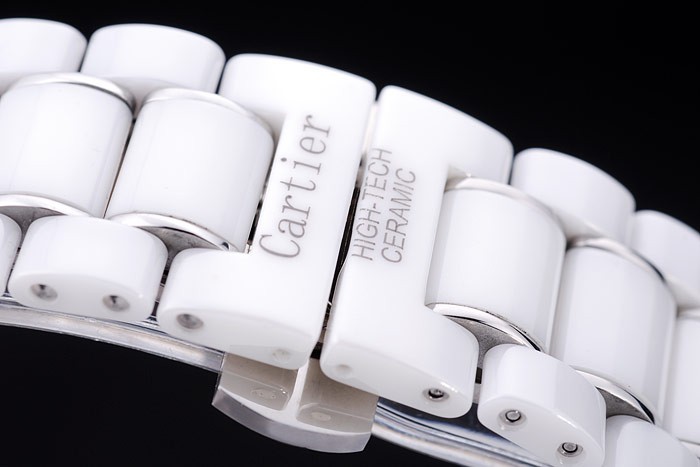 Bracelet: White ceramic and stainless steel link bracelet with Cartier High-Tech Ceramic engraved hidden push-release clasp
