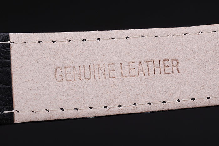 Bracelet: Heat embossed Cartier black crocodile leather strap with Cartier inscribed polished stainless steel hook-buckle clasp