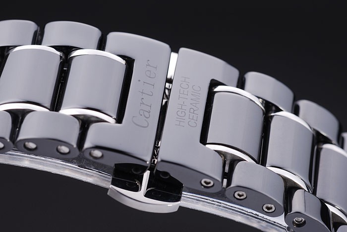 Bracelet: Black ceramic and stainless steel link bracelet with Cartier High-Tech Ceramic engraved hidden push-release clasp