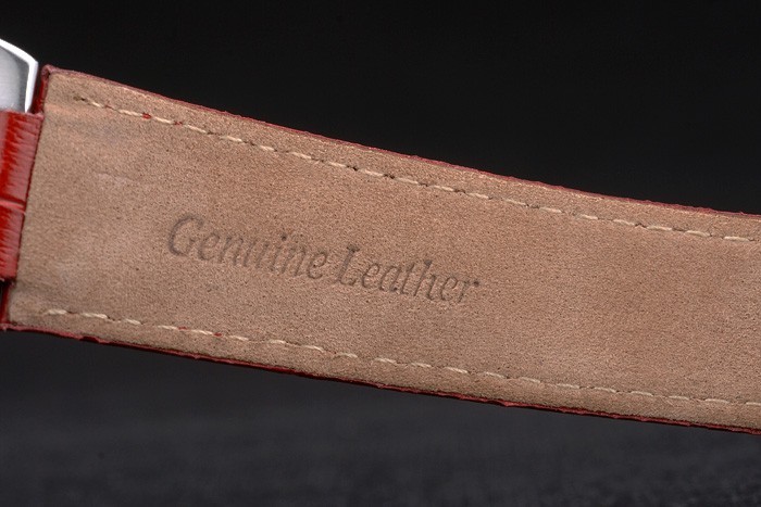 Bracelet: Cartier heat embossed red crocodile leather strap with polished stainless steel fold-in buckle clasp