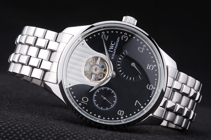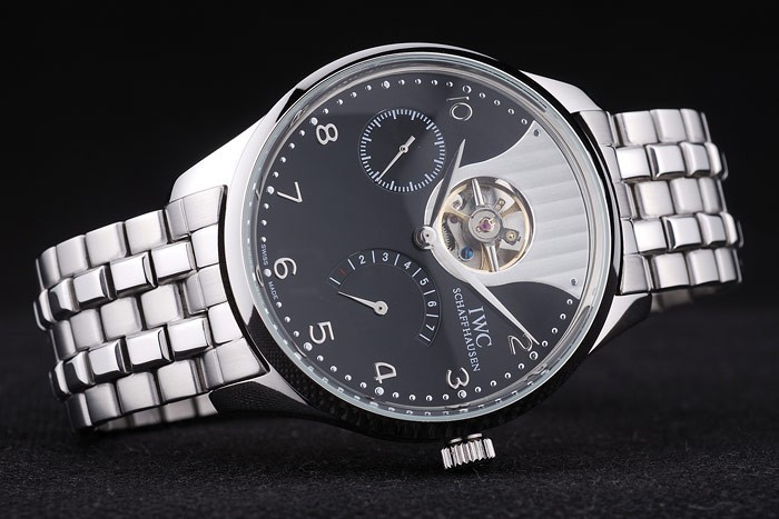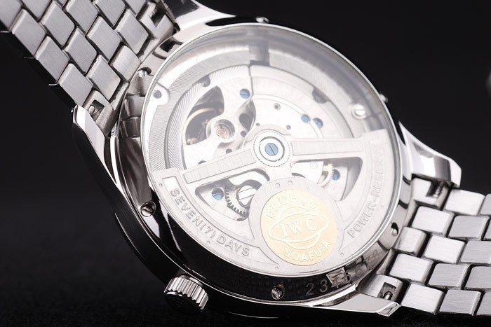Crown: Polished stainless steel cutwork crown with IWC logo engraving