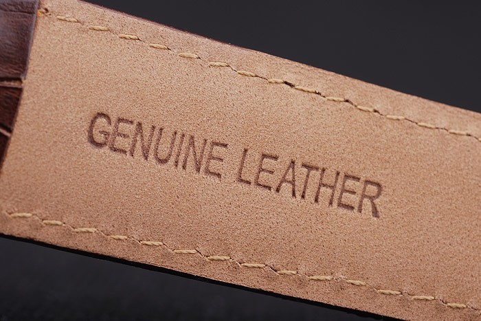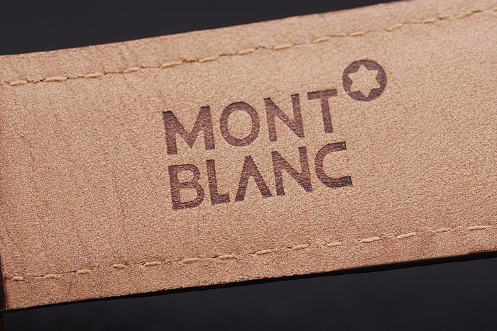Bracelet: Heat embossed MontBlanc brown crocodile leather strap with MontBlanc name and logo engraved polished stainless steel flip-over hook clasp