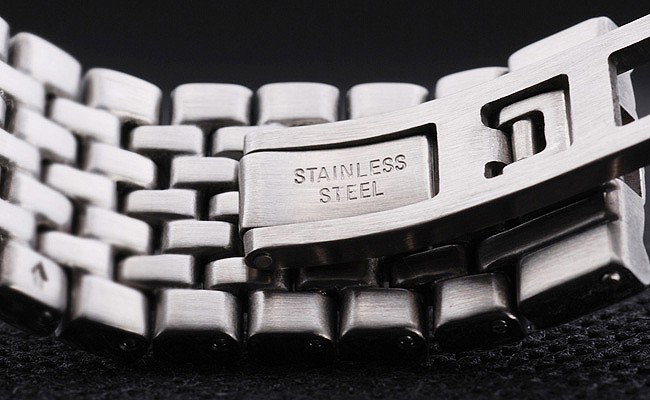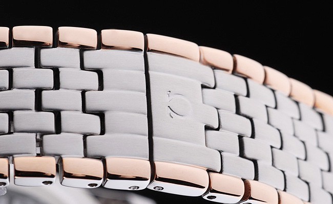 Crown: Polished stainless steel cutwork crown with Omega logo