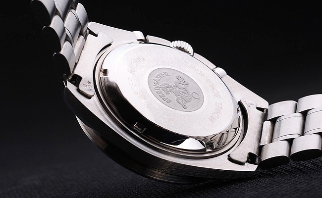 Crown: Polished stainless steel cutwork crown with Omega logo plus two additional crowns, one on either side of it