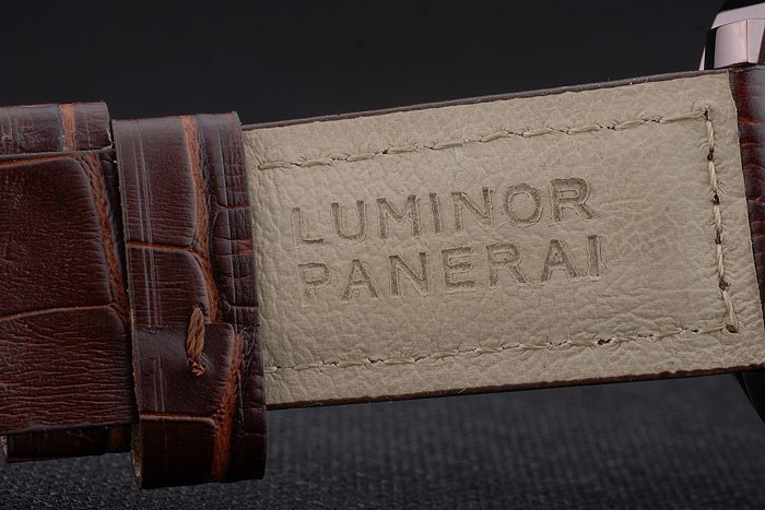 Bracelet: Luminor Panerai heat embossed brown crocodile leather strap with brown enamel Panerai engraved hook-buckle clasp