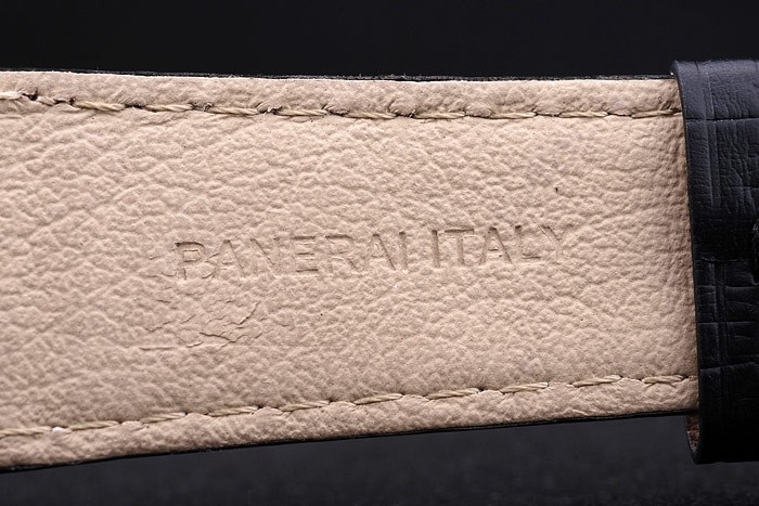 This watch has AR glass. The face color will appear different colors depending on how the light falls on itBack: screw, solid 440 stainless steel, engraved with Panerai name