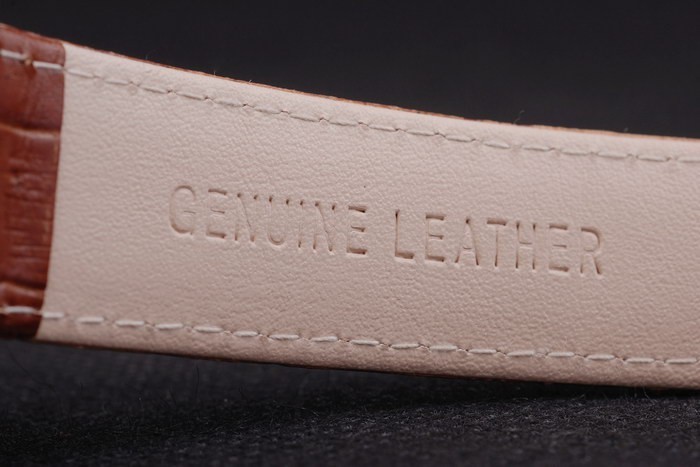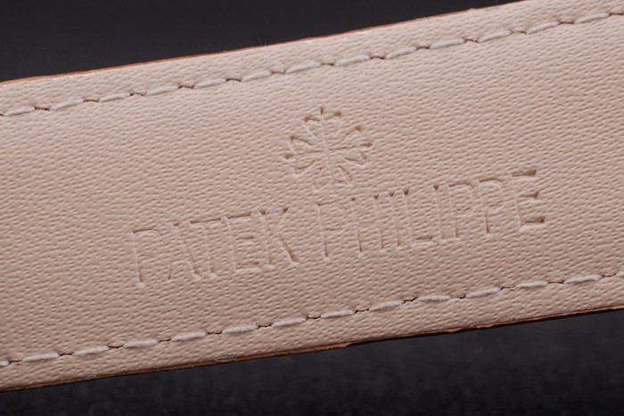 Bracelet: Brown leather strap with Patek Philippe stamp and a rose gold fold in clasp