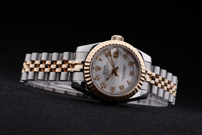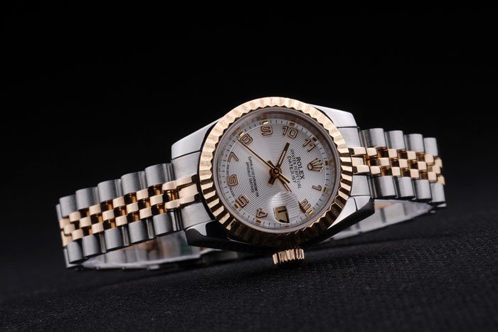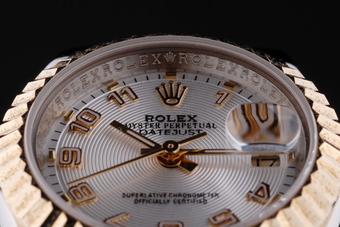 Crown: 18k yellow gold plated steel cutwork crown with Rolex logo