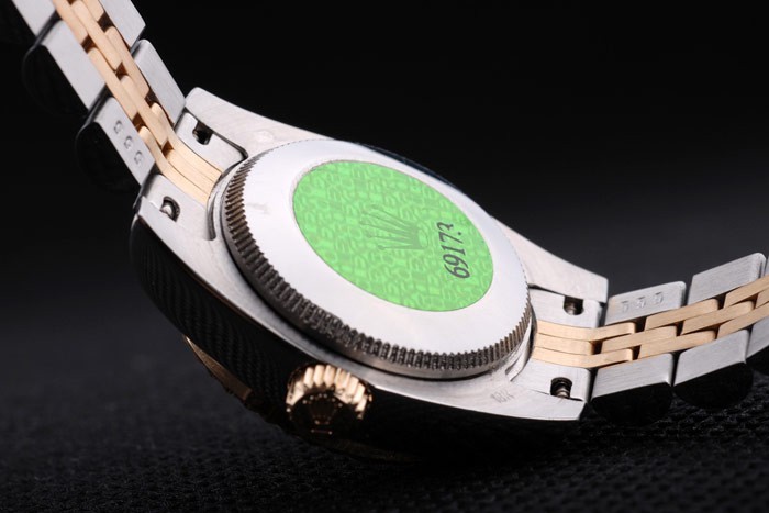 Back: Stainless steel push-in case back with green Rolex logo stamp