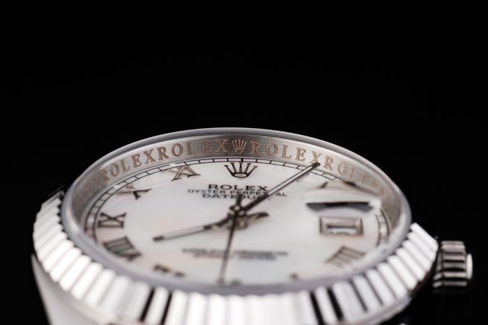 Back: Push in stainless steel back with green Rolex sticker and markings