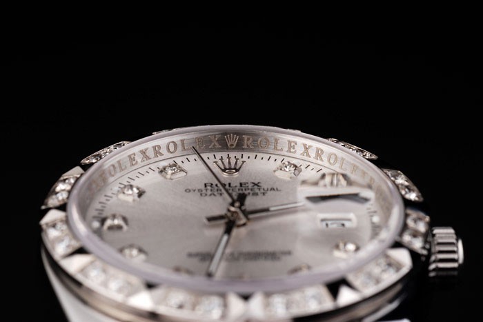 Back: Push in stainless steel back with green Rolex sticker and markings