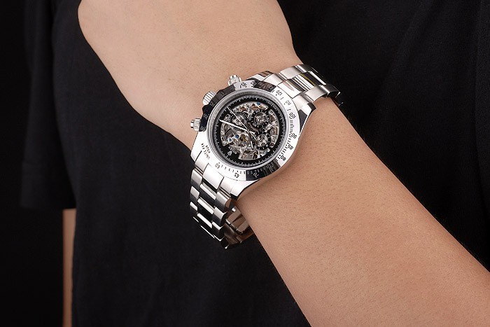 Back: Transparent stainless steel push-in case back that reveals the mechanics within