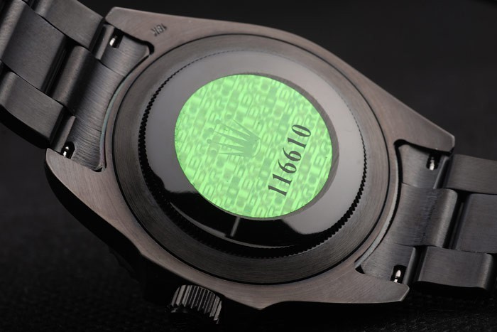 Back: Ion-plated stainless steel push-in case back with green Rolex logo stamp