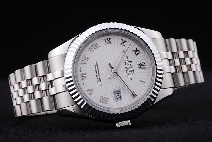 Crown: Polished stainless steel cutwork crown with Rolex logo engraving