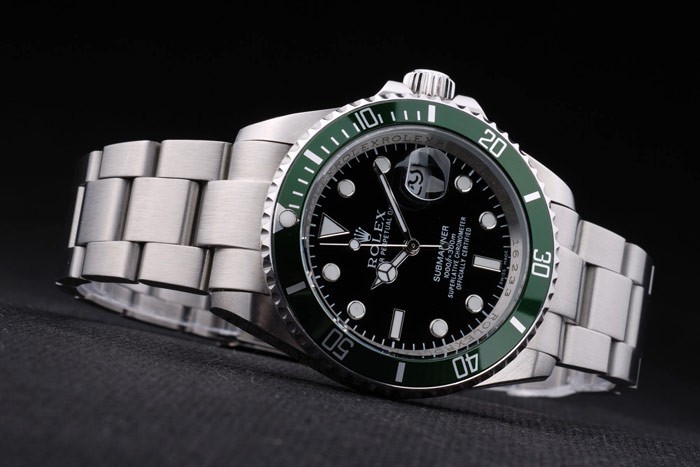 Back: Stainless steel push-in case back with green Rolex engraving stamp