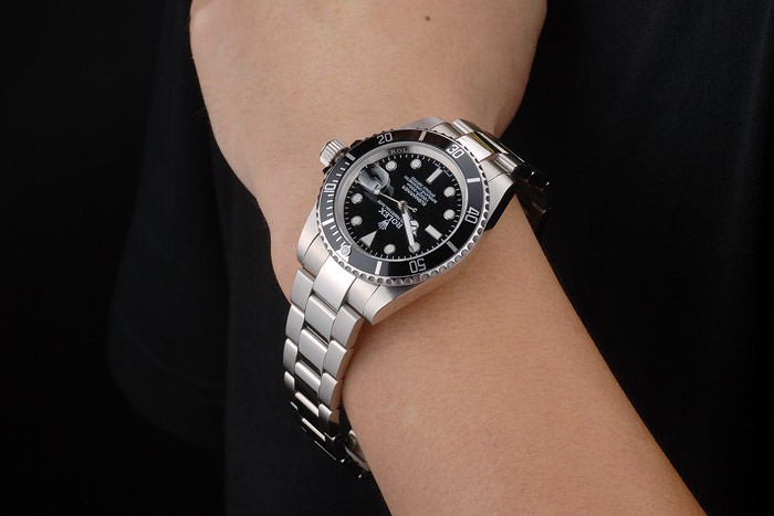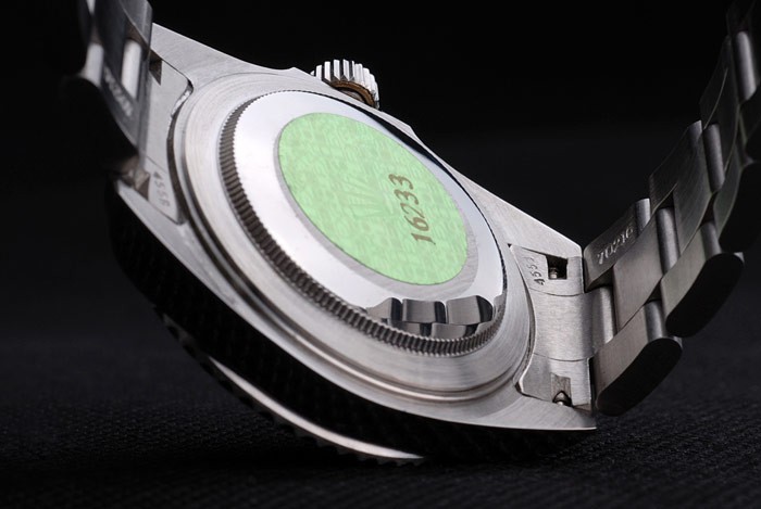 Back: Stainless steel push-in case back with green Rolex engraving stamp