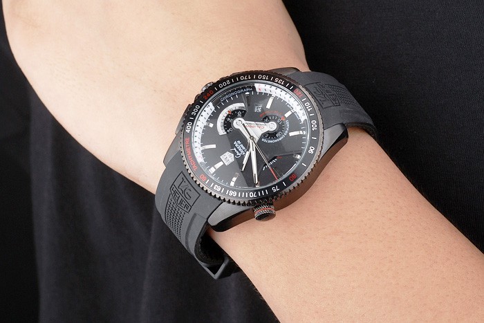 Back: Ion-plated stainless steel screwed down case back with Tag Heuer engravings