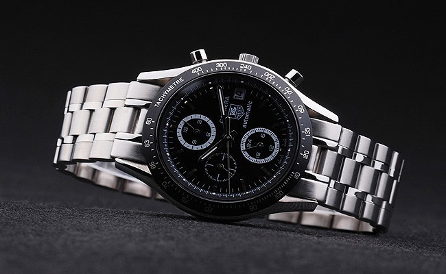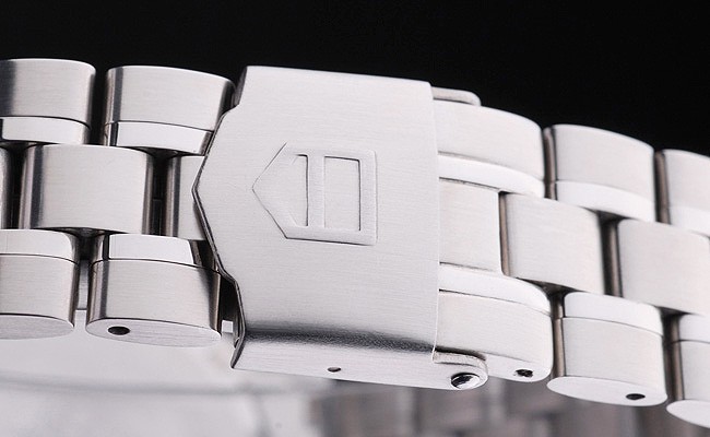 Crown: Polished stainless steel cutwork crown with Tag Heuer logo plus two additional crowns, one on either side